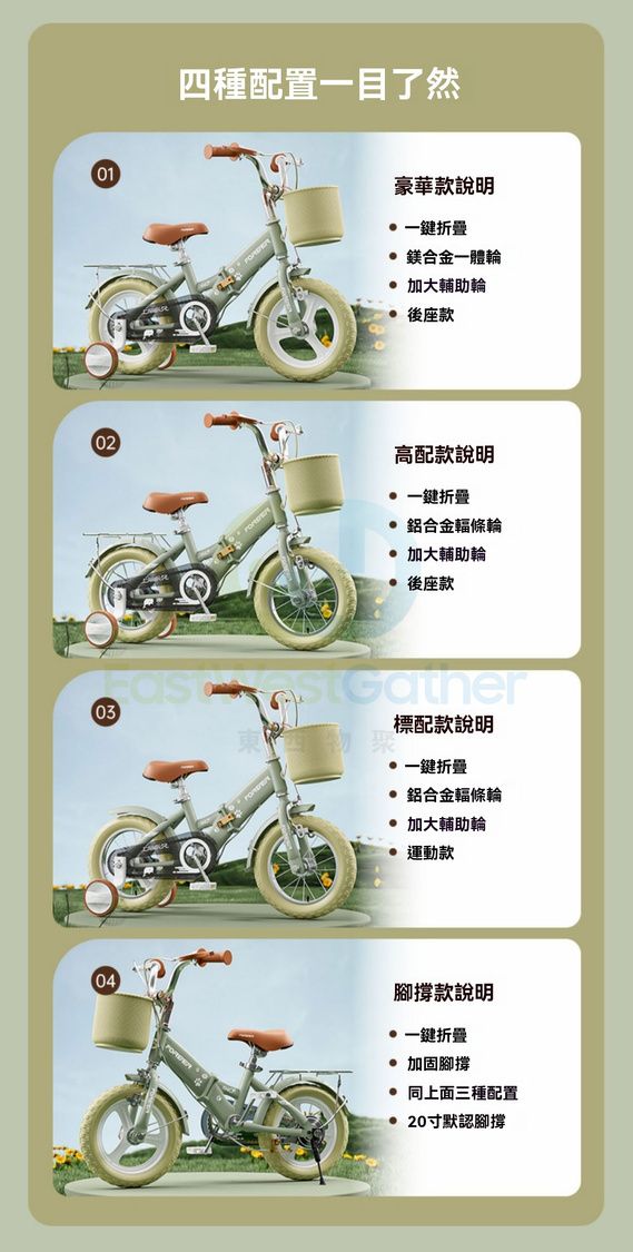 包安裝送貨-20寸 、98%裝+雲母灰+可折疊+輻條輪+高承重+復古車筐 後座款-兒童單車 兒童自行車 山地自行車 兒童玩具車 兒童腳踏車