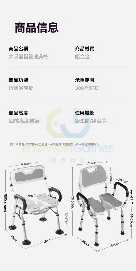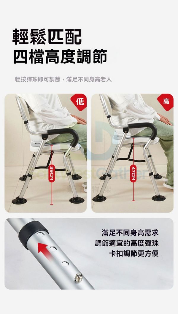 包安裝送貨-【防滑腳墊】可折疊免裝-U型坐板-老人家用椅 淋浴椅 洗澡浴凳