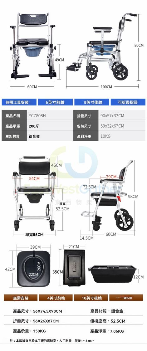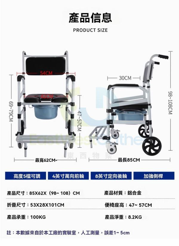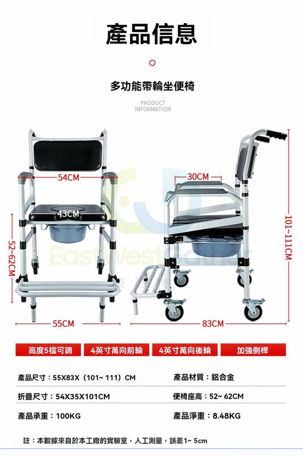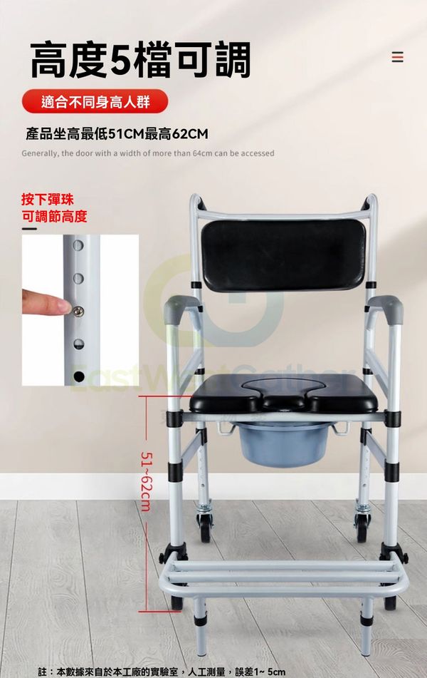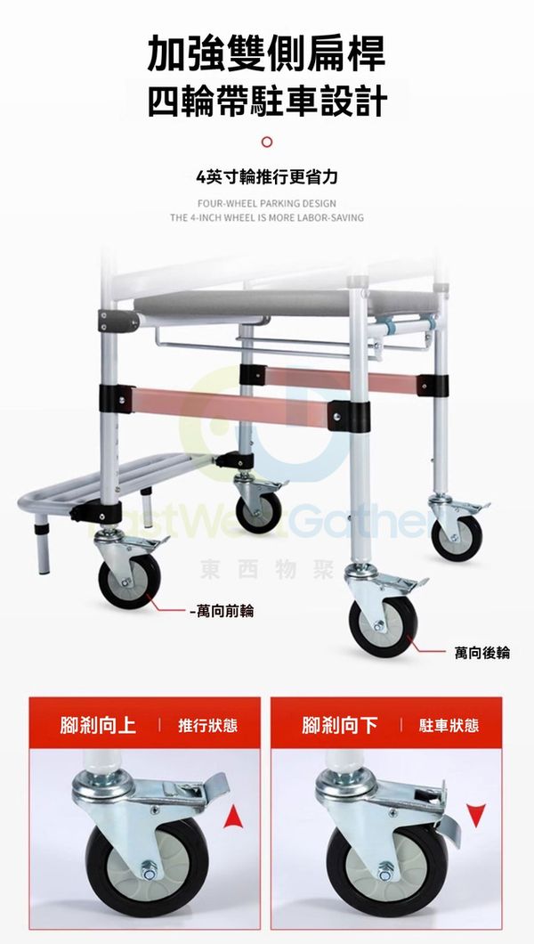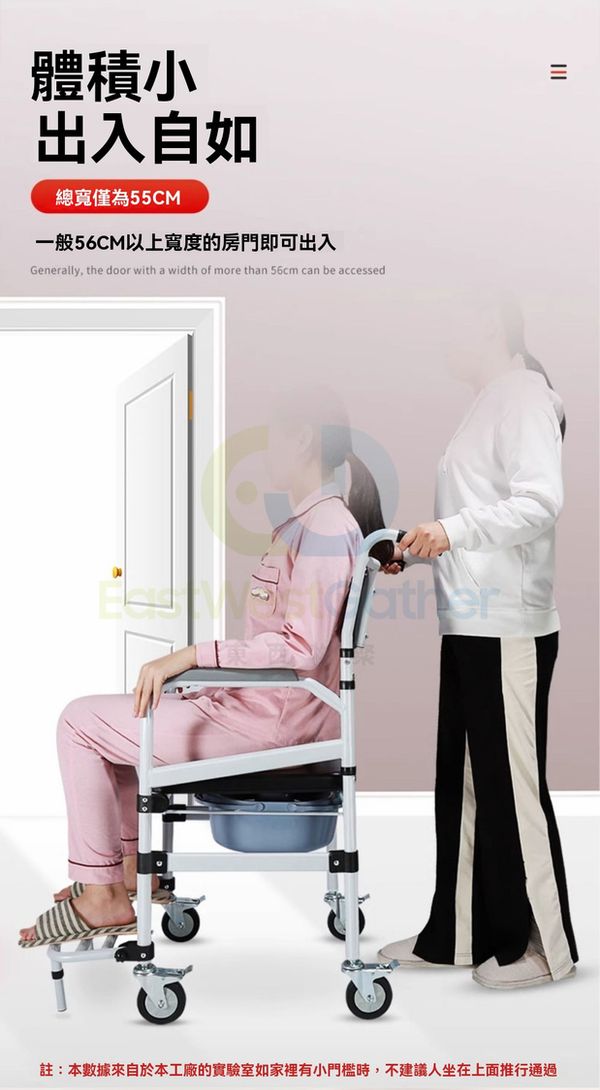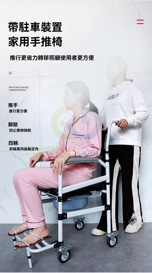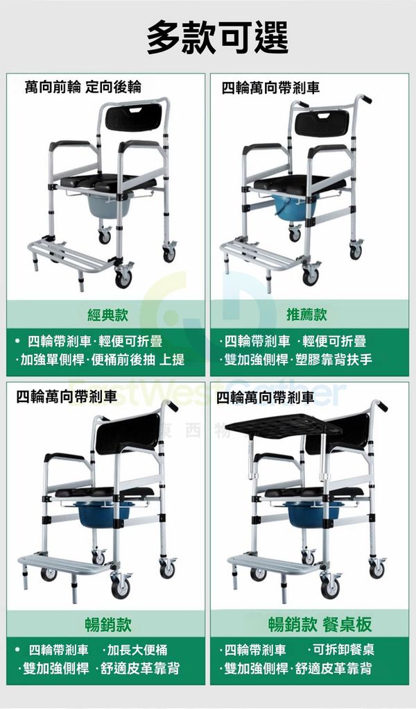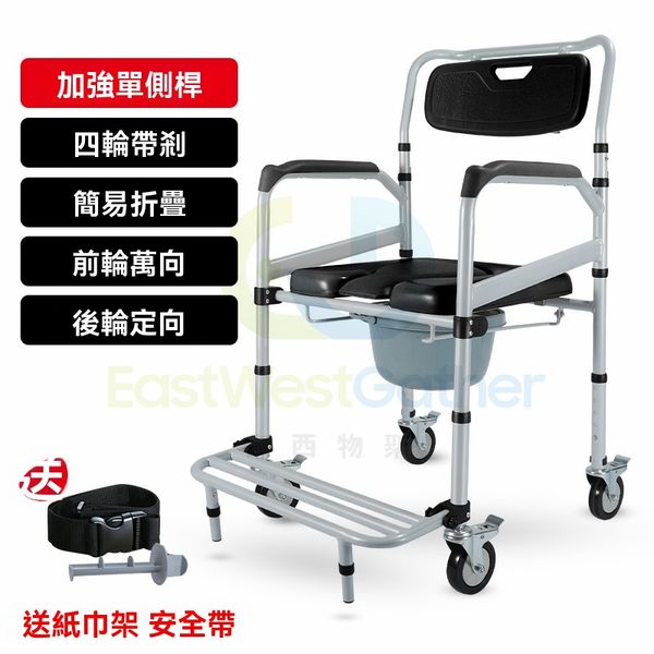 包安裝送貨-【經典款】加強單側杆+四輪帶刹+可折疊-孕婦馬桶椅凳 老人家用椅 淋浴椅 洗澡浴凳 殘疾人移動馬桶