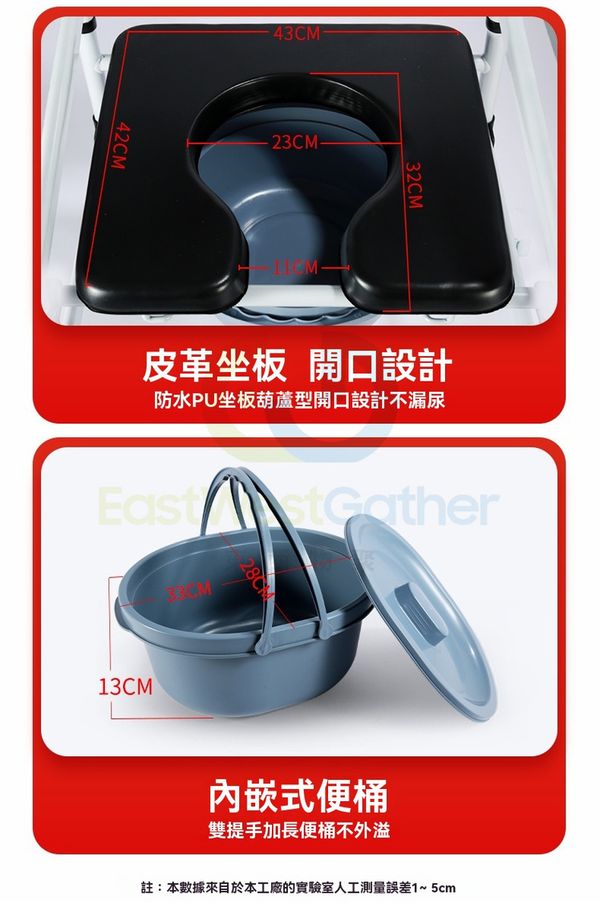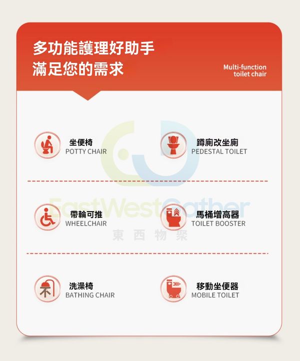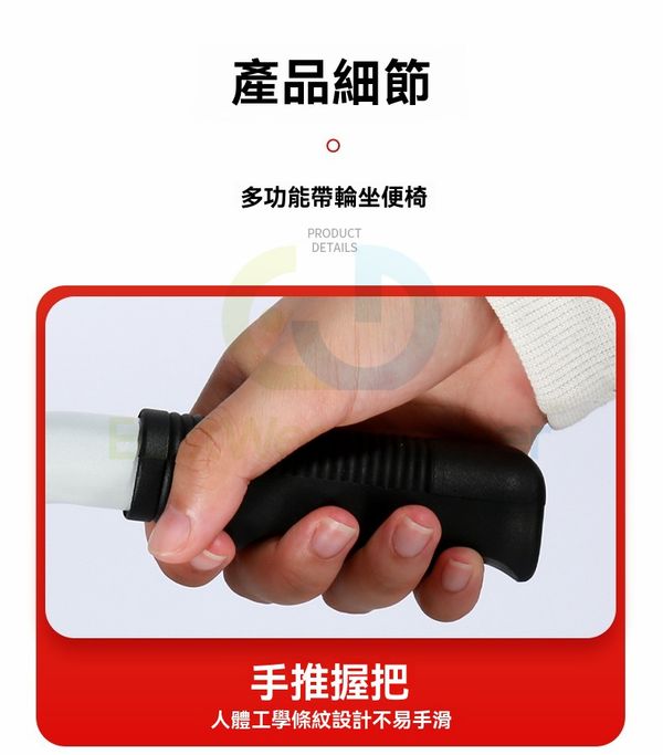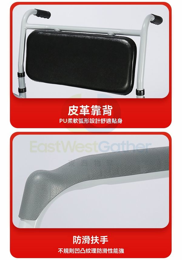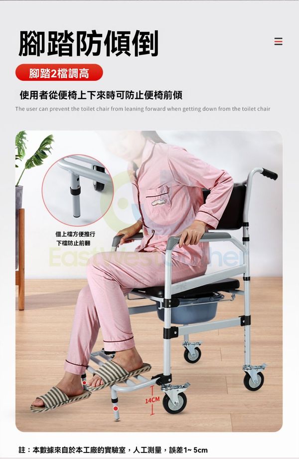 腳踏防傾倒,使用者從便椅上下來時可防止便椅前倾