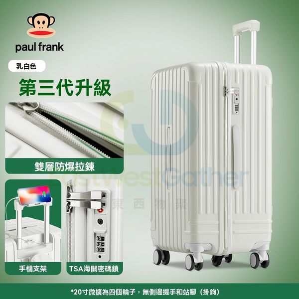 包送貨-乳白色【雙層防爆拉鏈 TSA海關鎖 手機支架】 、22寸-行李喼 旅行喼 旅行箱 拉桿箱 結婚密碼箱