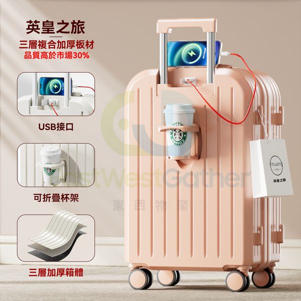 包送貨-茱萸粉【多功能升級款】 、22寸-行李喼 旅行喼 旅行箱 拉桿箱 結婚密碼箱