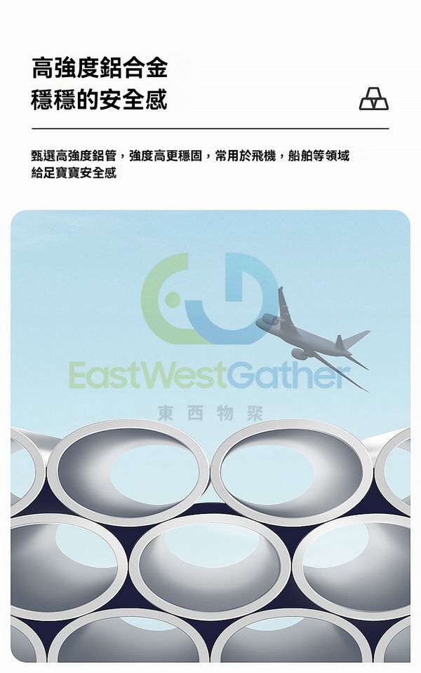 甄選高強度鋁管,強度高更穩固,常用於飛機,船舶等領域給足寶寶安全感