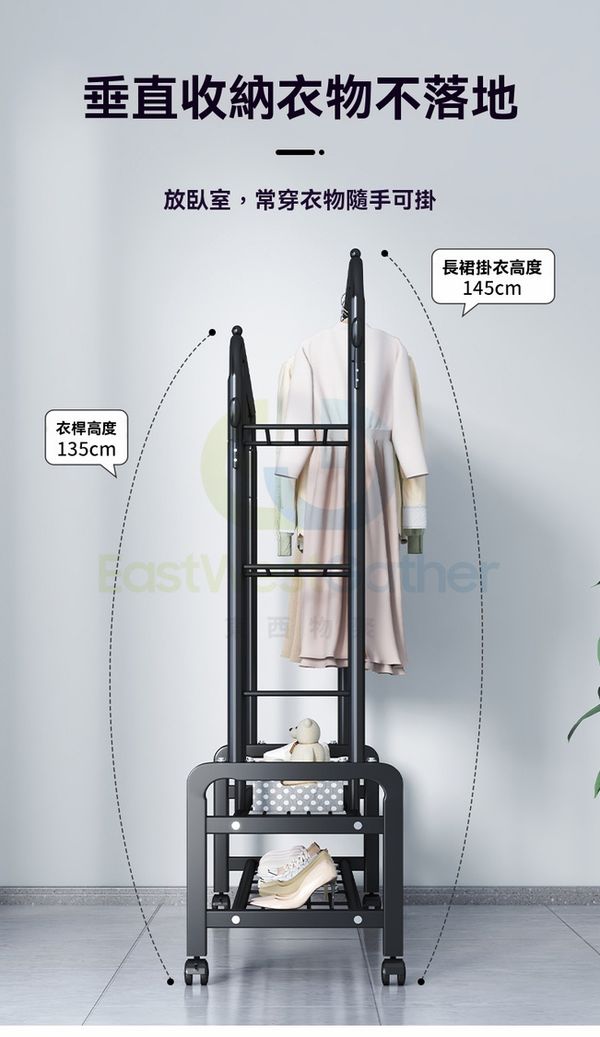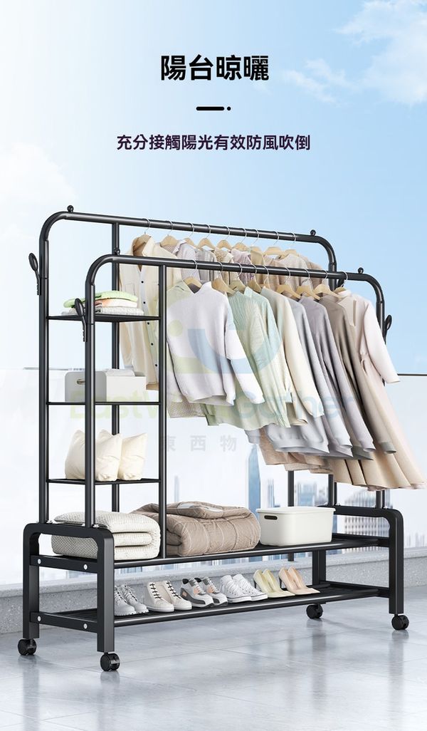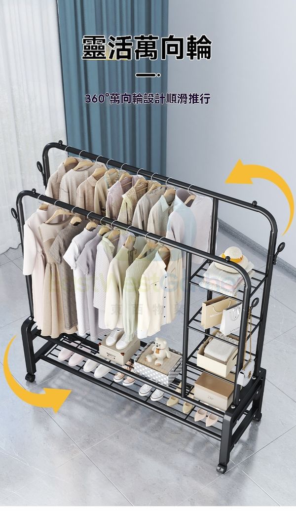 多功能落地衣架雙層收納