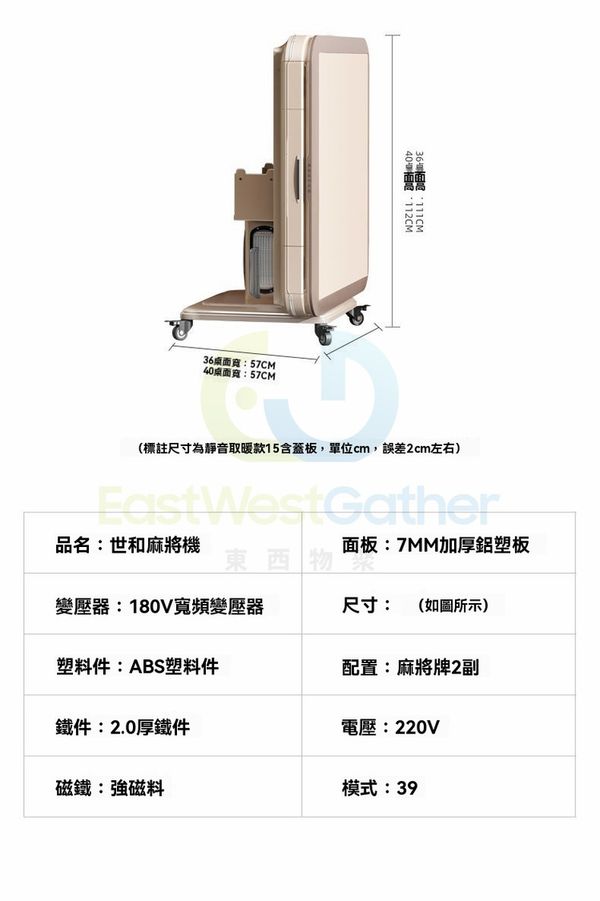 包安装送貨-经典香槟色折叠款54号108张-電動麻雀機、電動麻將機、電動麻雀枱