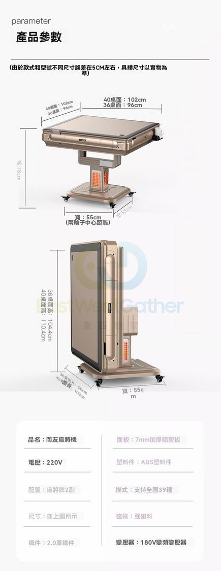 包安装送貨-【經典取暖款】時尚灰-原蓋板 、48號108/112/120張- 電動麻雀機、電動麻將機、電動麻雀枱
