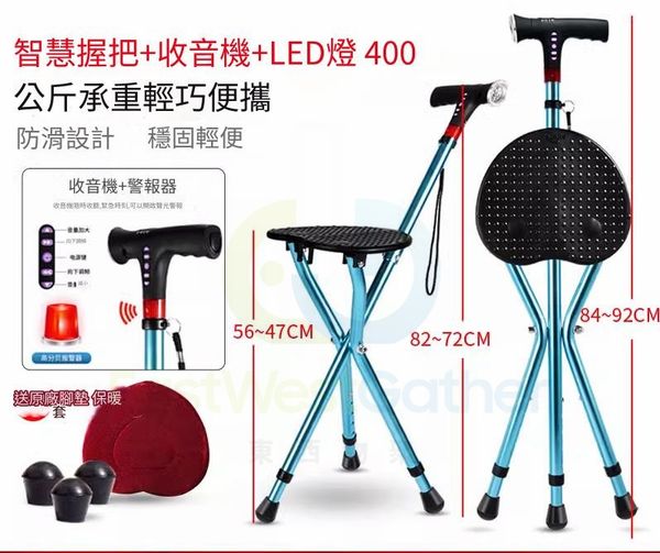 包送貨-智能款+LED燈+收音機功能+高度可調 送禮包- 登山杖 老人拐杖 可坐拐棍
