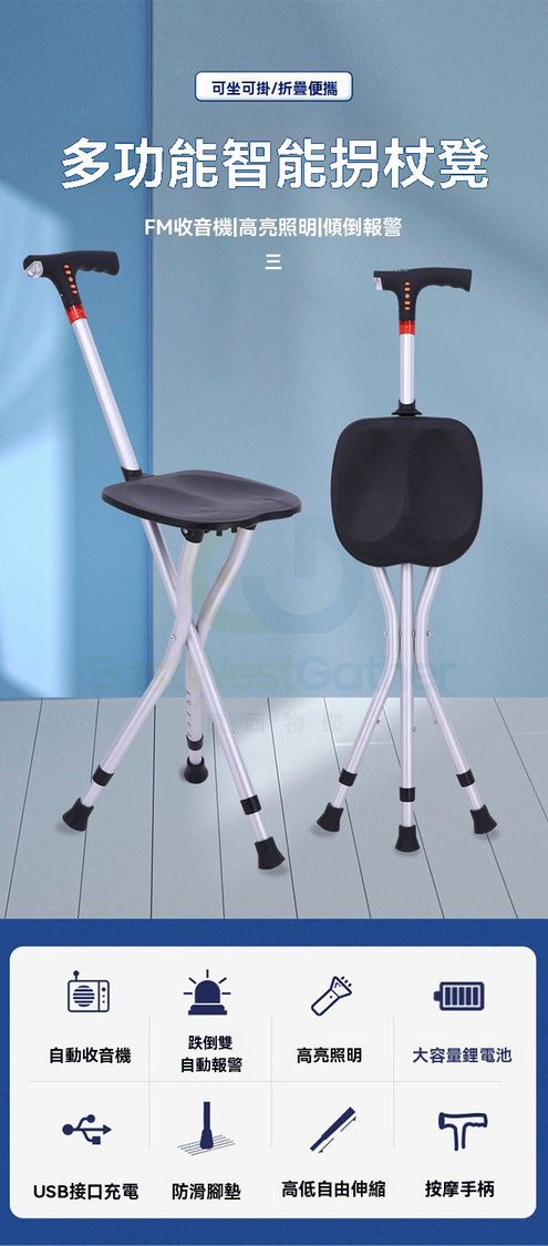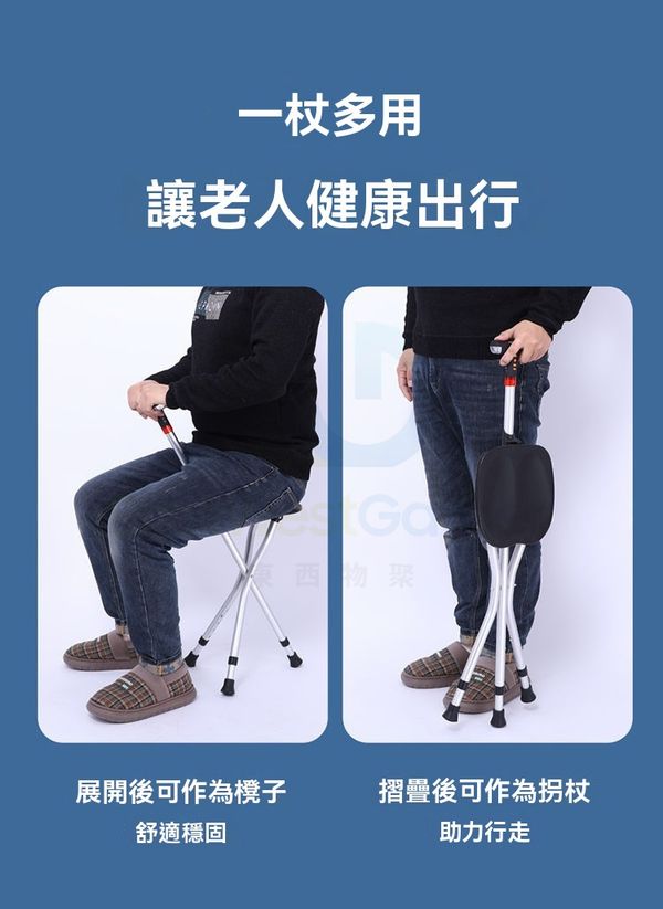 可坐可掛/折疊便攜,多功能智能拐杖凳