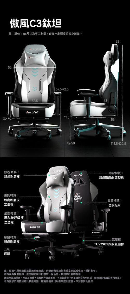 包安装送貨-C3鈦坦【呼吸皮 內嵌式腰托】-腳托款-1199 、尼龍腳 、旋轉升降扶手-電競椅 電腦椅 老闆椅 遊戲椅 學習椅 辦公椅