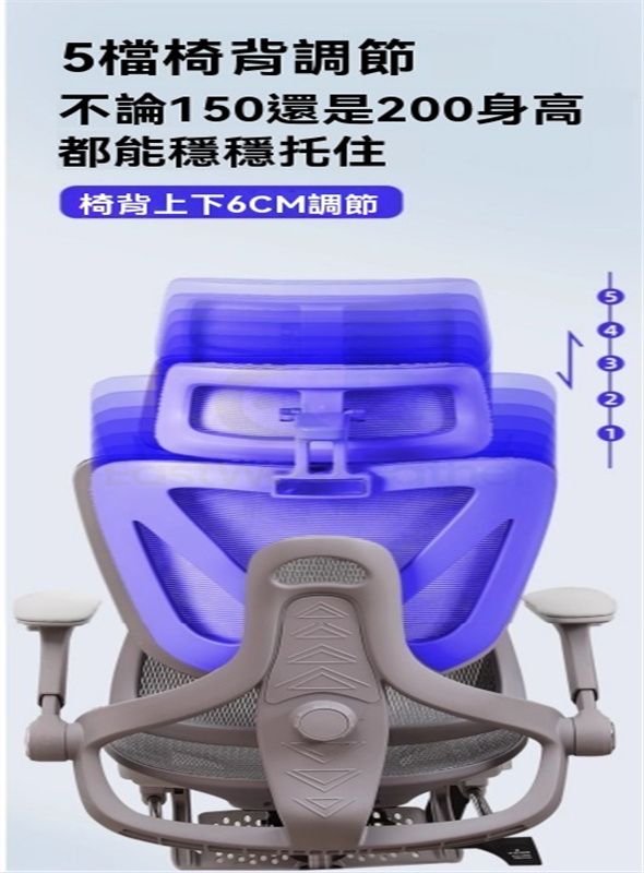 5檔椅背調節,不論150還是200身高都能穩穩托住椅背上下6CM調節