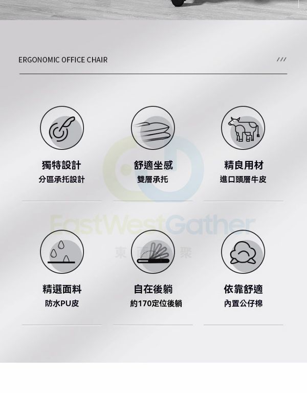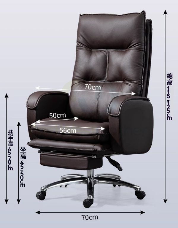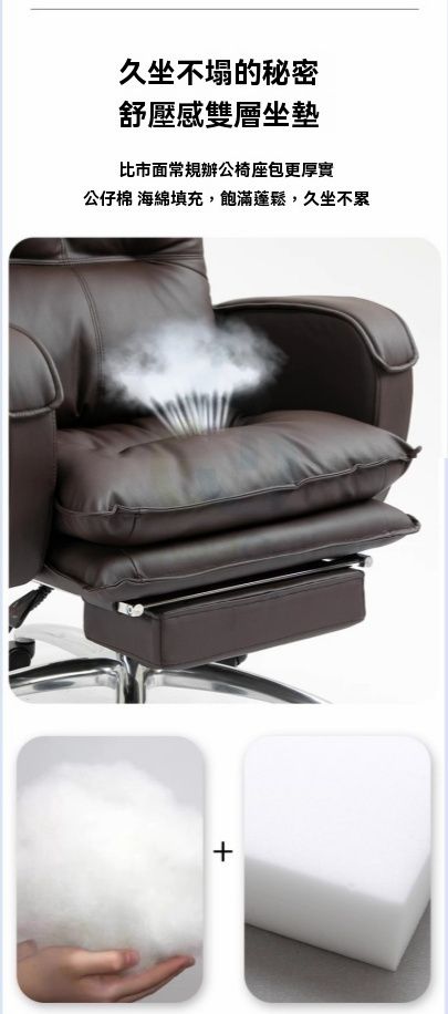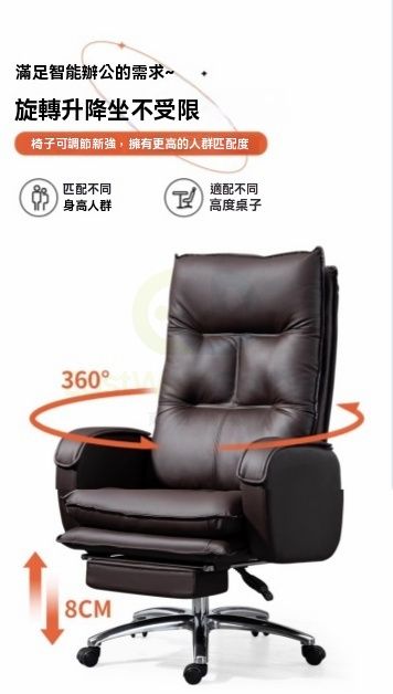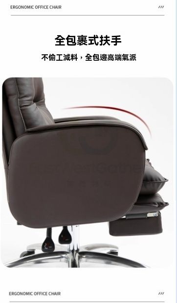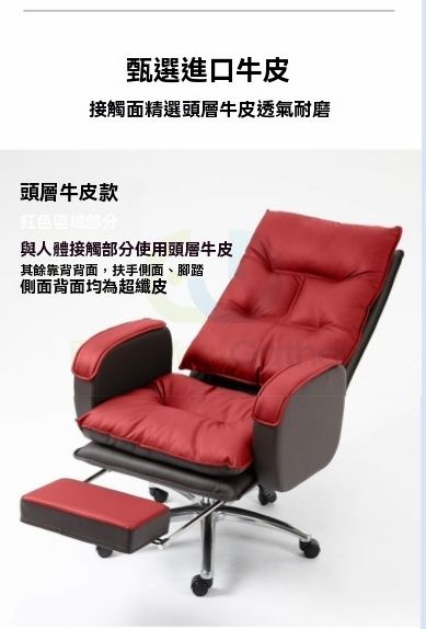 與人體接觸部分使用頭層牛皮其餘靠背背面,扶手側面、腳踏側面背面均為超纖皮