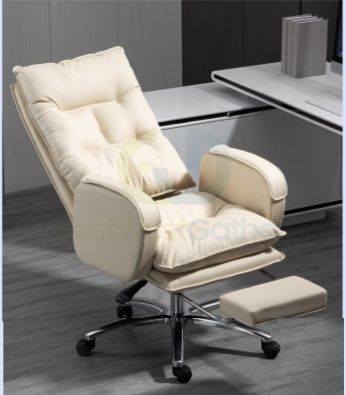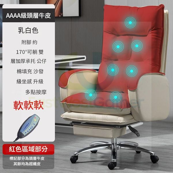 包安装送貨-頭層牛皮奶白+擱腳+遙控按摩 、鋁合金腳 -電競椅 電腦椅 老闆椅 遊戲椅 學習椅 辦公椅
