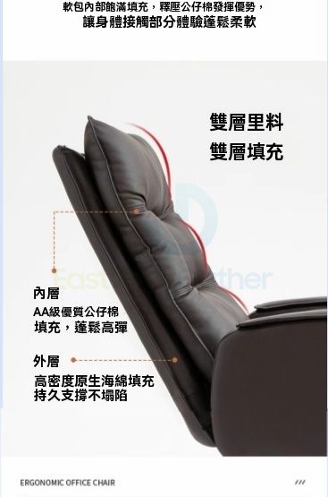 舒適功能升級,增加後躺角度,辦公累了躺一會,