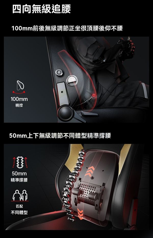 四向無級追腰100mm前後無級調節正坐很頂腰後仰不腰