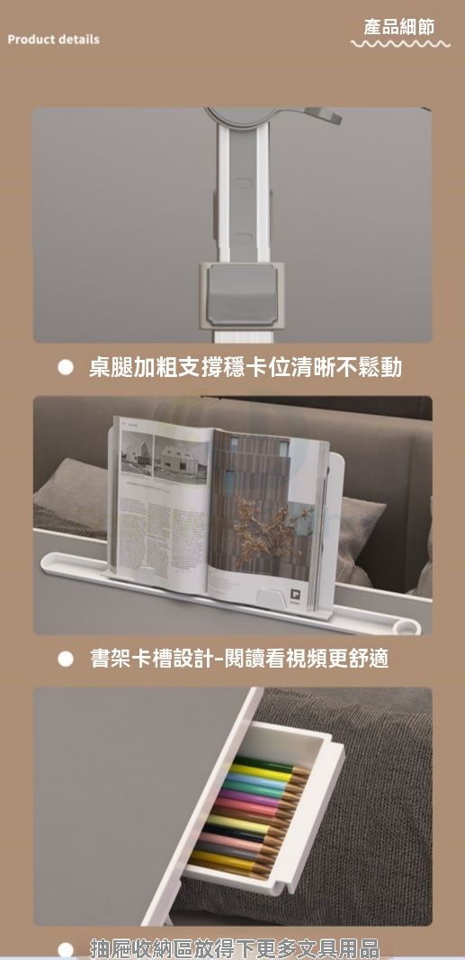 閱讀書架USB風扇/護眼燈 lpad卡槽 寬大桌面