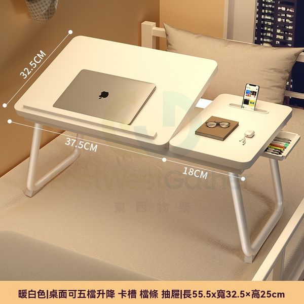 包送貨-【桌面五檔升降】暖白色-卡槽-抽屜- 小型電腦檯 小型電腦桌 床上電腦桌 折疊小型學習枱
