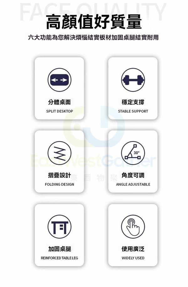 可調節桌面,實用杯托,防滑檔條,碳鋼桌腿,防滑腳墊