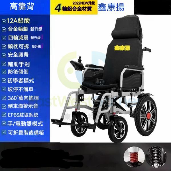 包送貨-【高靠背】+四輪減震|12A鉛酸【30-40裏】-電動輪椅 老人代步車 電動折疊輪椅