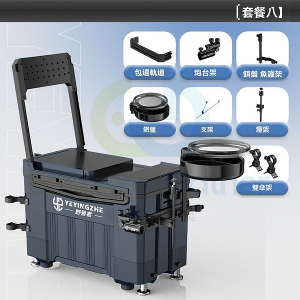 包送貨-免安裝 釣魚箱 Fishing Box 【星藍】不帶輪中靠背【標準套餐】+燈架多功能台釣箱 漁具 超輕魚桶(M1122763-21)
