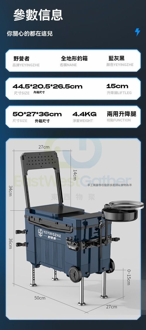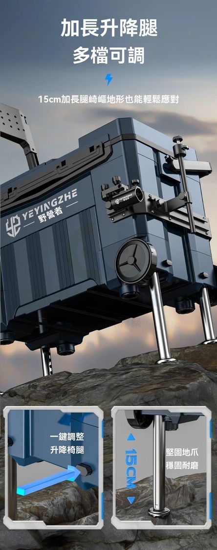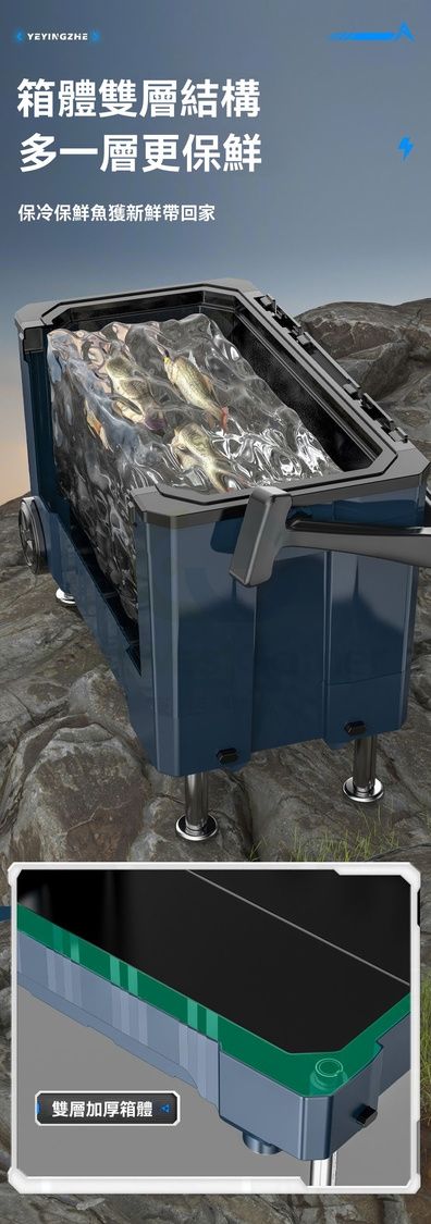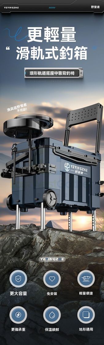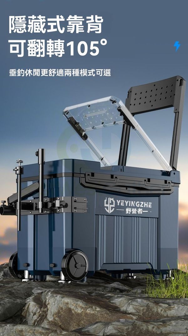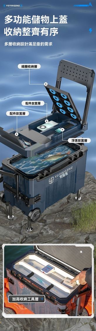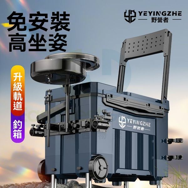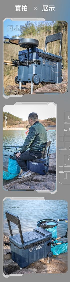 包送貨-免安裝 釣魚箱 Fishing Box 【星藍】不帶輪中靠背【標準套餐】+燈架+工具層多功能台釣箱 漁具 超輕魚桶(M1122763-22)