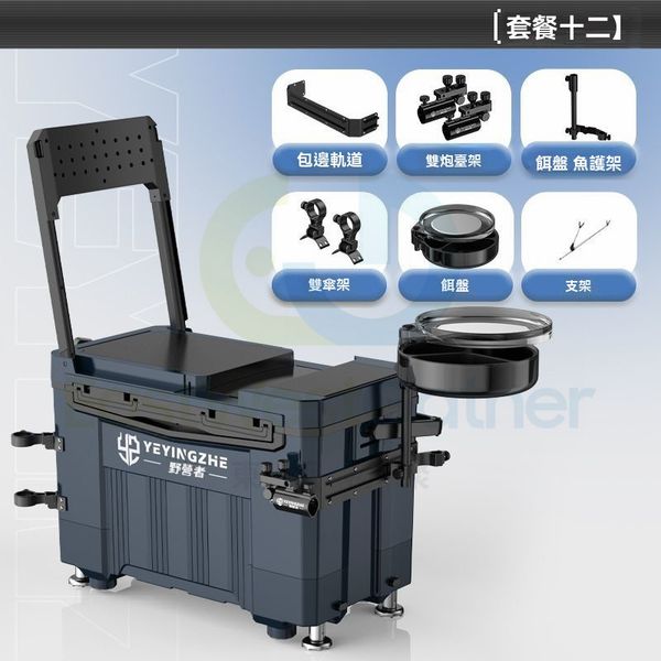 包送貨-免安裝 釣魚箱 Fishing Box 【星藍】不帶輪中靠背【標準套餐】+前置炮臺多功能台釣箱 漁具 超輕魚桶(M1122763-25)