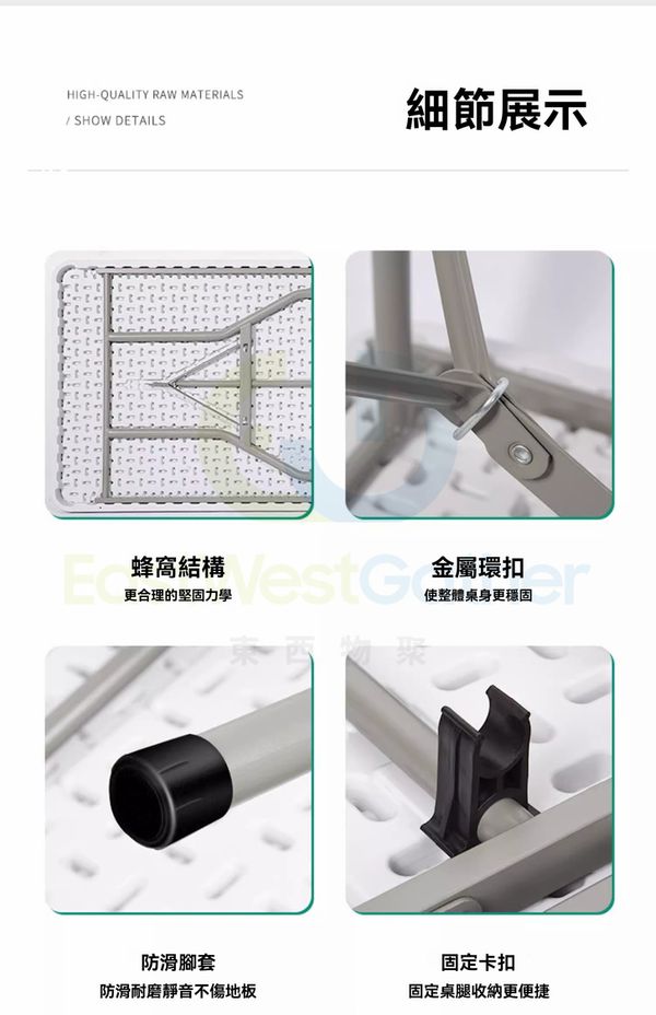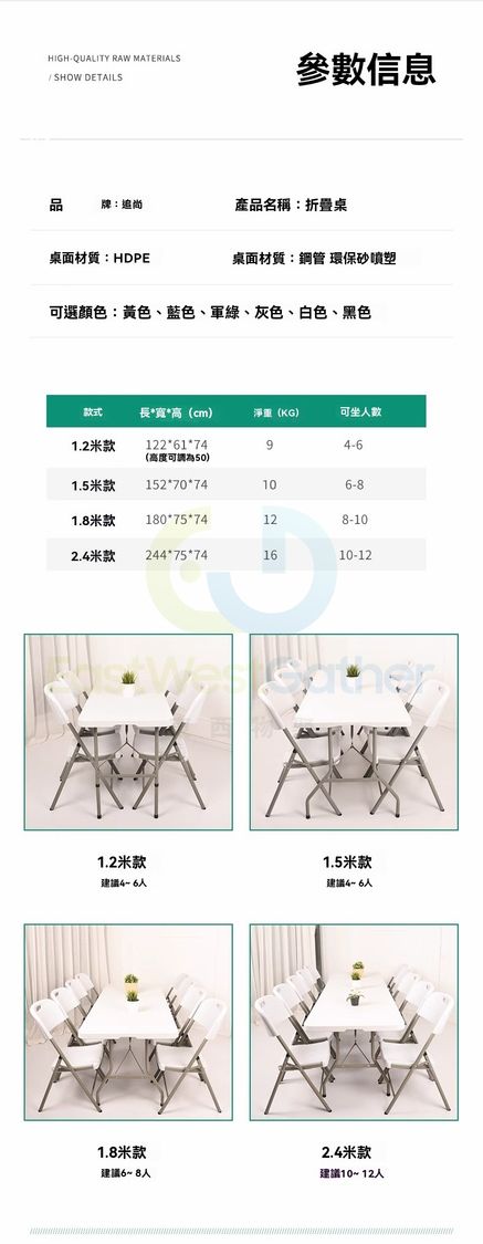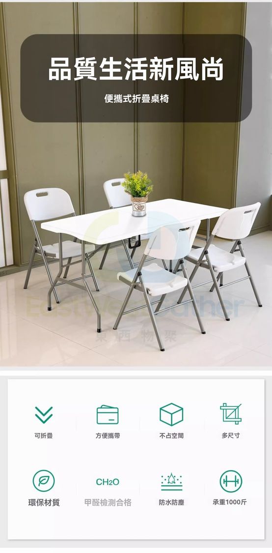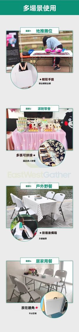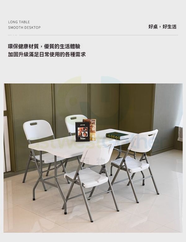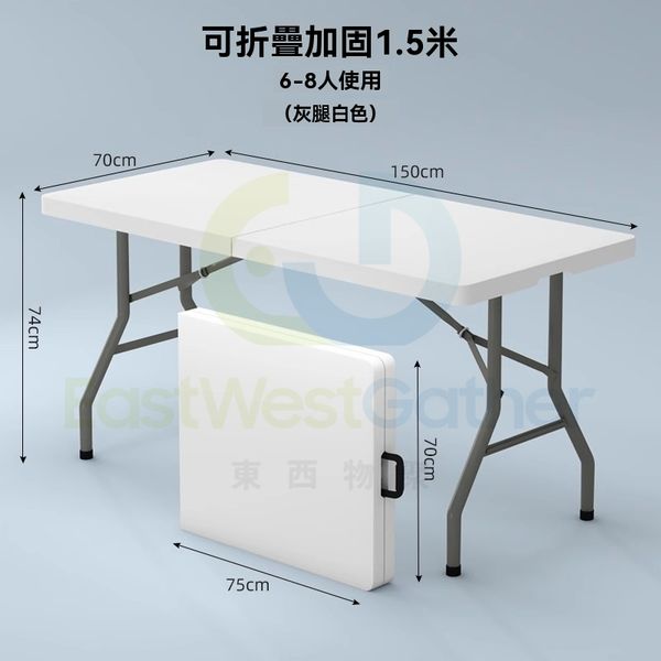 包送貨- 免安裝 折疊桌子 Folding table 1.5米白折疊加固 長方形 戶外枱 擺攤可擕式長條桌 摆摊桌 飯檯(M1122764-10)