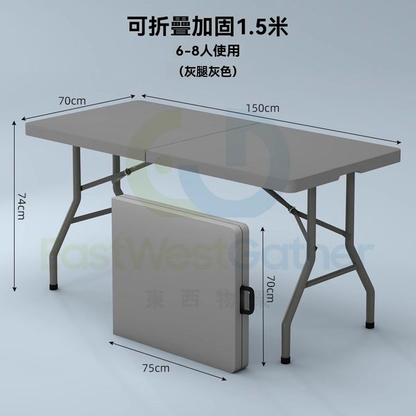 包送貨- 免安裝 折疊桌子 Folding table 1.5米灰折疊加固 長方形 戶外枱 擺攤可擕式長條桌 摆摊桌 飯檯(M1122764-13)