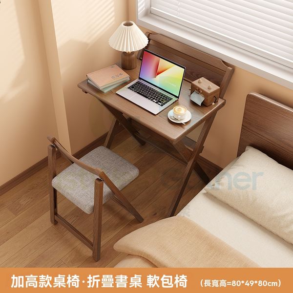 包送貨 - 免安裝 折疊書桌 folding desk 【加高款】80CM+加高軟包椅-胡桃色180以上或高座位使用 折疊檯 學習枱 電腦桌 飯桌(M1122766-20)