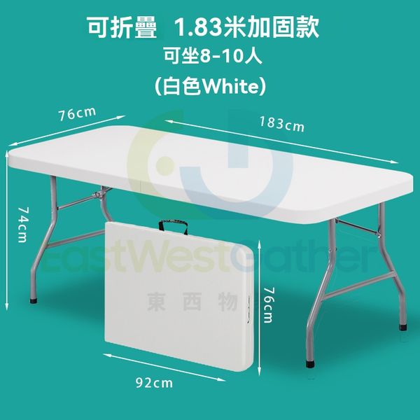包送貨 - 折疊桌 1.83米白色【可折疊加固款】 折疊檯 飯桌 便攜擺攤枱 长方形桌子 免安裝(M1122768-17)