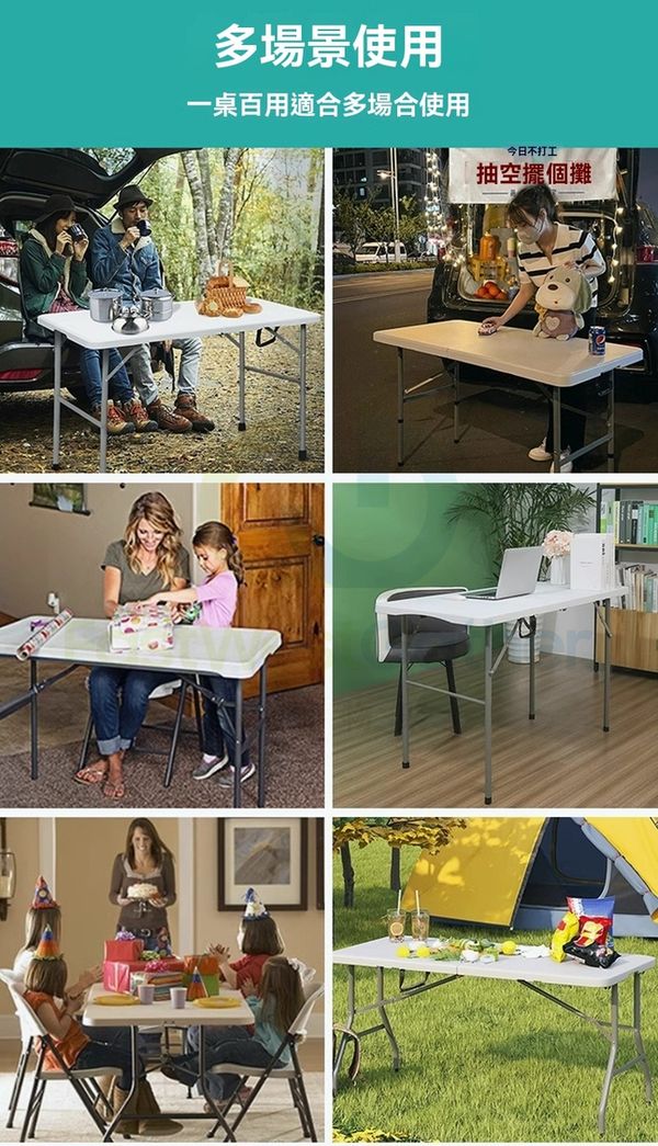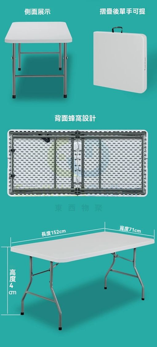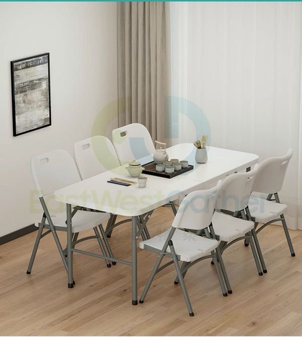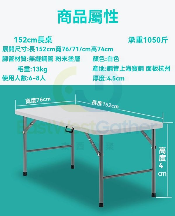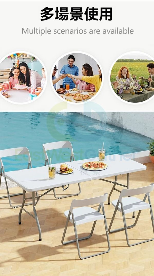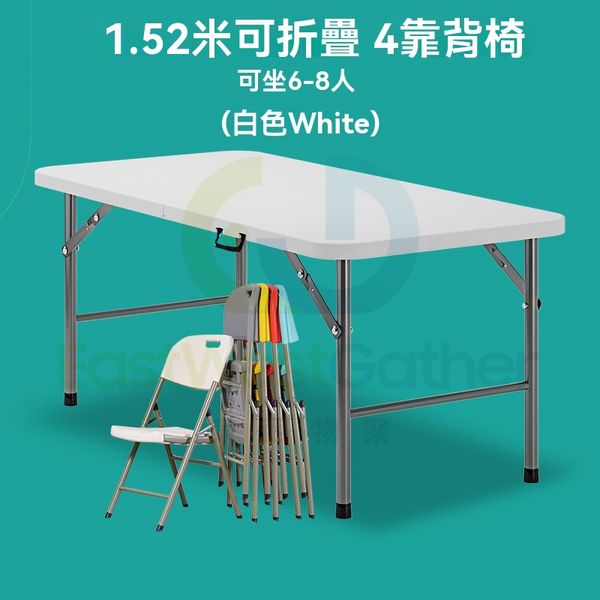 包送貨 - 折疊桌 1.5米+4個靠背椅 折疊檯 飯桌 便攜擺攤枱 长方形桌子 免安裝(M1122768-24)