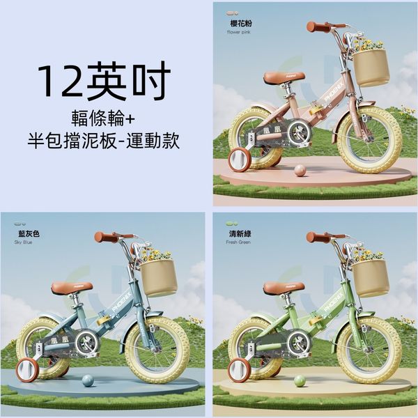 包安裝送貨 - 鳳凰兒童折疊自行車 Children's Folding Bicycle 12英寸可折疊+輻條輪+半包擋泥板-運動款 男童女孩脚踏單車(M1122794-07)
