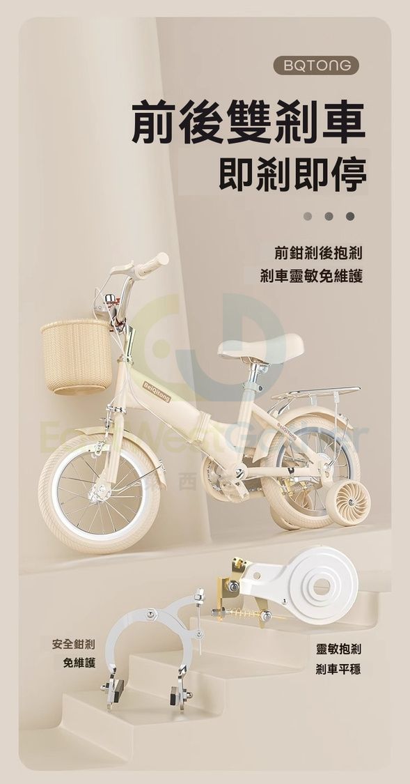 包安裝送貨 - 兒童自行車 Children's bicycle 20吋 【米胎】+靜音輪+折疊(身高125-145CM,約8-12歲) 童車 小孩折疊脚踏單車(M1122796-53)