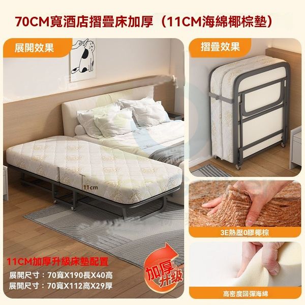 包送貨- 折疊床 Folding Bed 70cm寬+11cm加厚海綿+椰棕墊+母嬰級進口針織 家用辦公室加床 單人午睡拼接簡易陪護單人床 Single Bed 午休臨時床(M1122830-05)