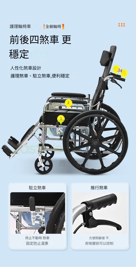 款式一:【全躺機械款輻條輪】送餐桌便桶