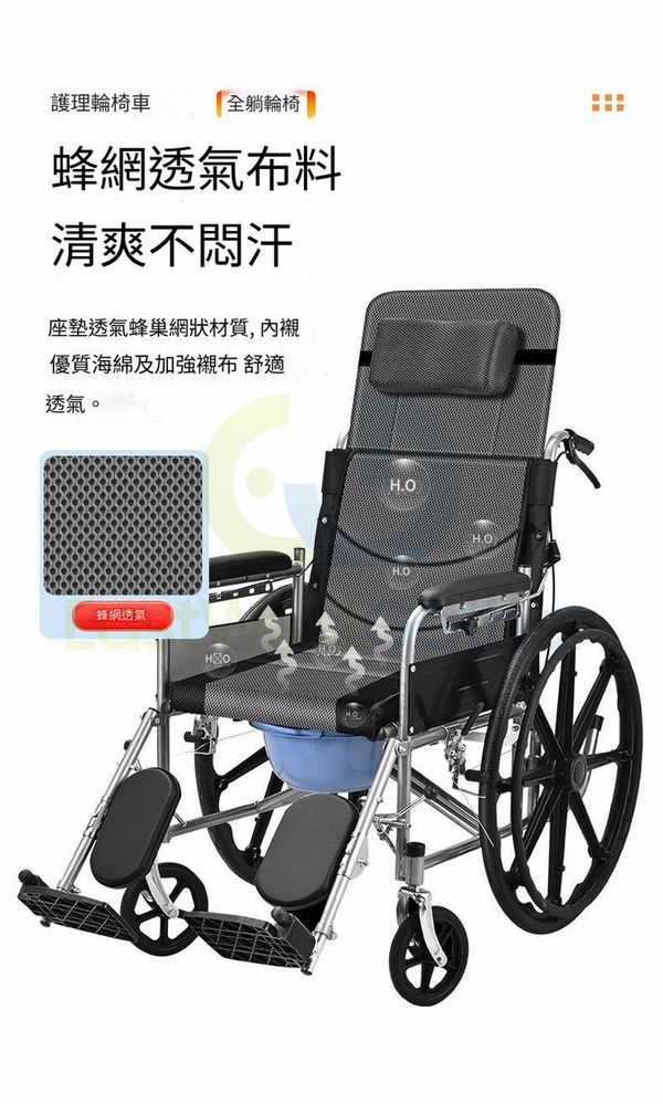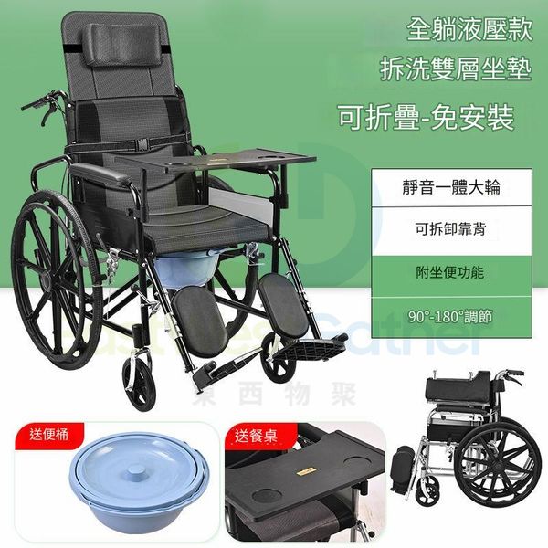 包送貨 - 可折疊輪椅 Foldable wheelchair【液壓款全躺一體輪】雙層坐墊送餐桌板 手動輪椅 全躺輪椅 免安裝 老人代步車 (M22286-04)