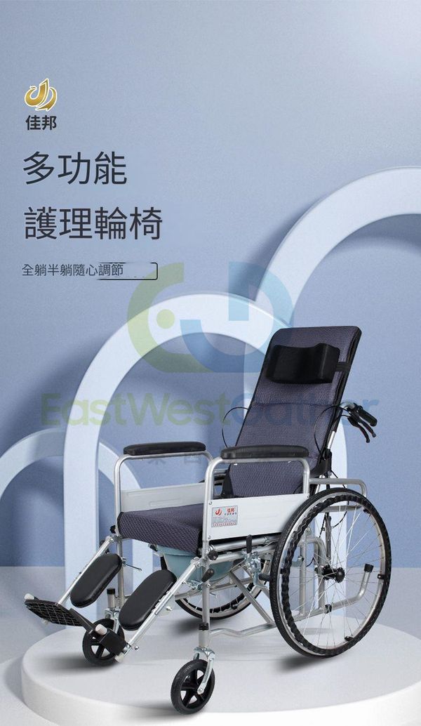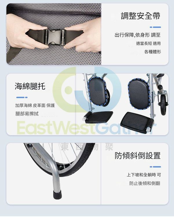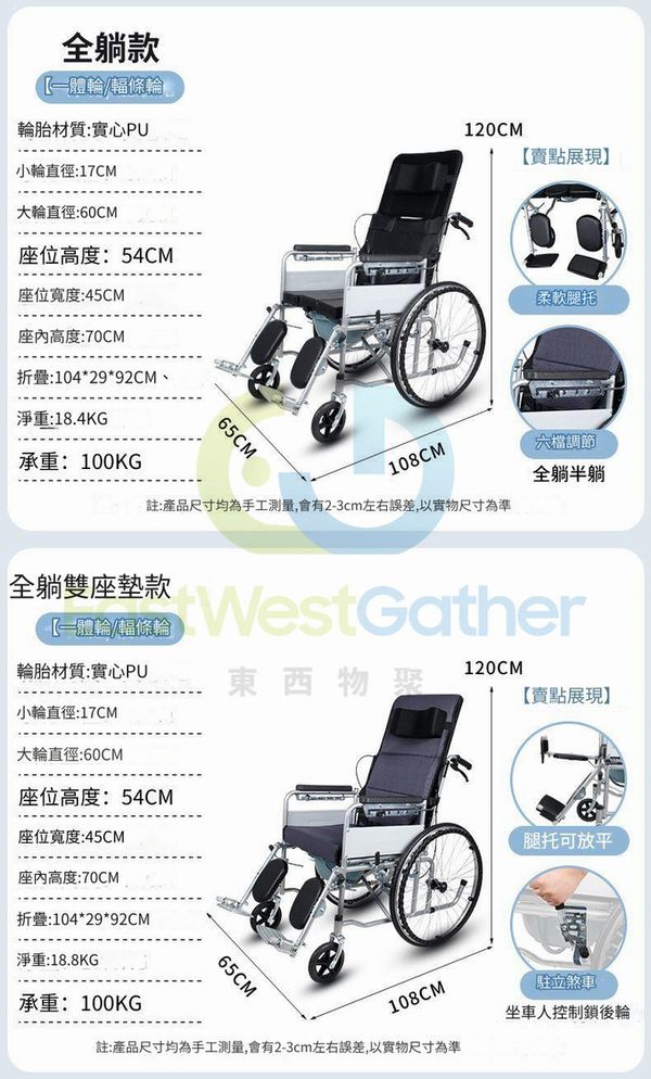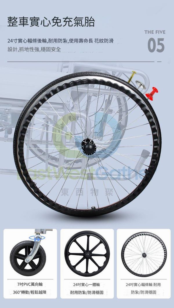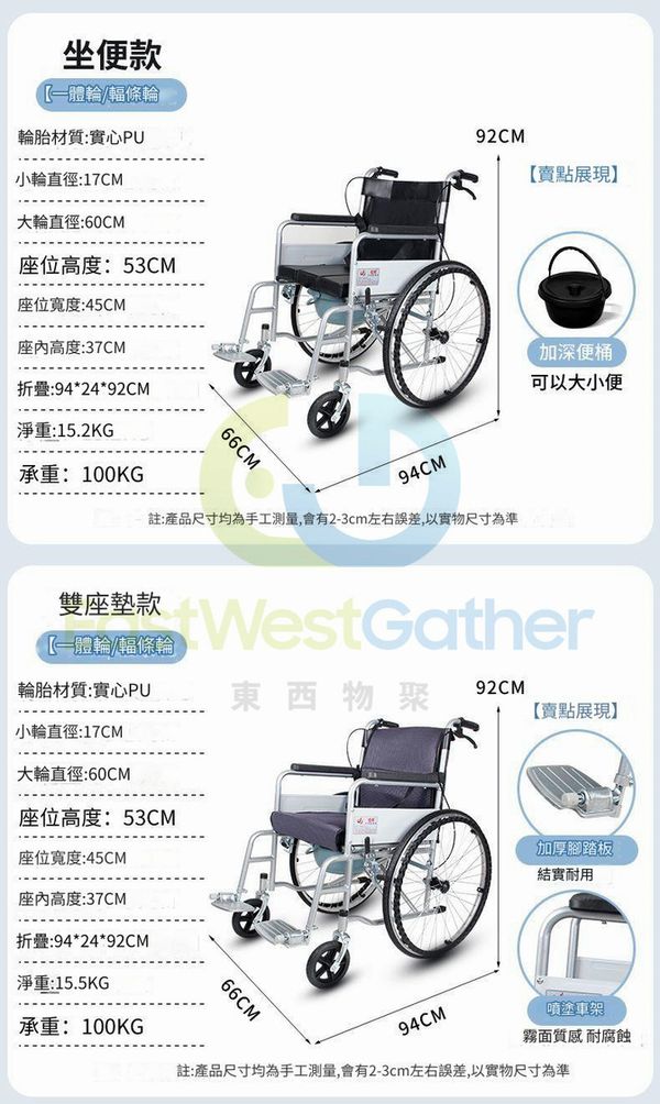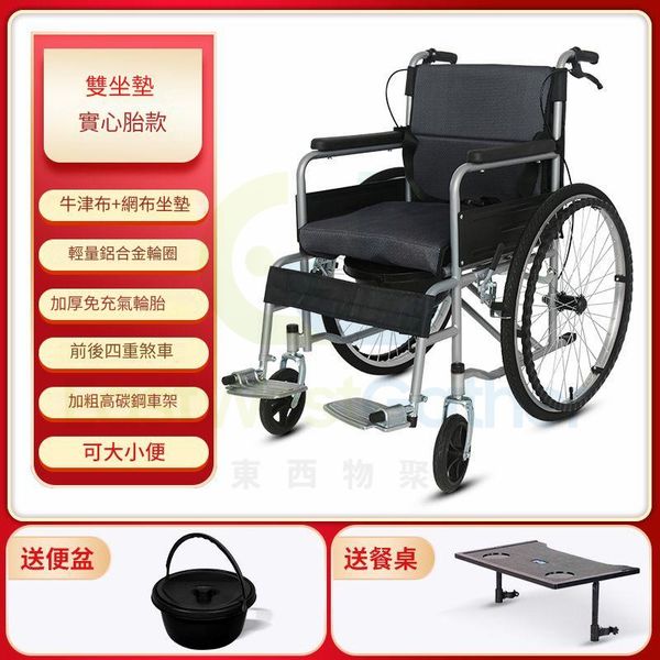 包送貨 - 可折疊輪椅 Foldable wheelchair 可拆洗雙坐墊-實心胎(附坐便)送餐桌 手動輪椅 老人代步車 癱瘓外出代步車(M22287-05)