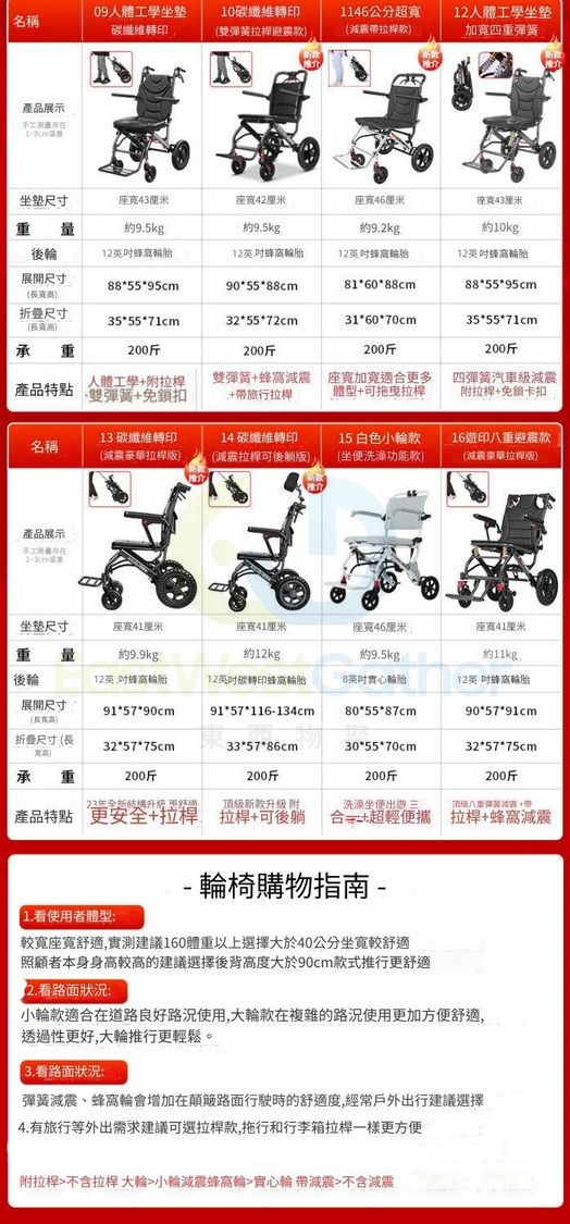 款式三:可後躺帶拉杆碳纖維轉印輪椅