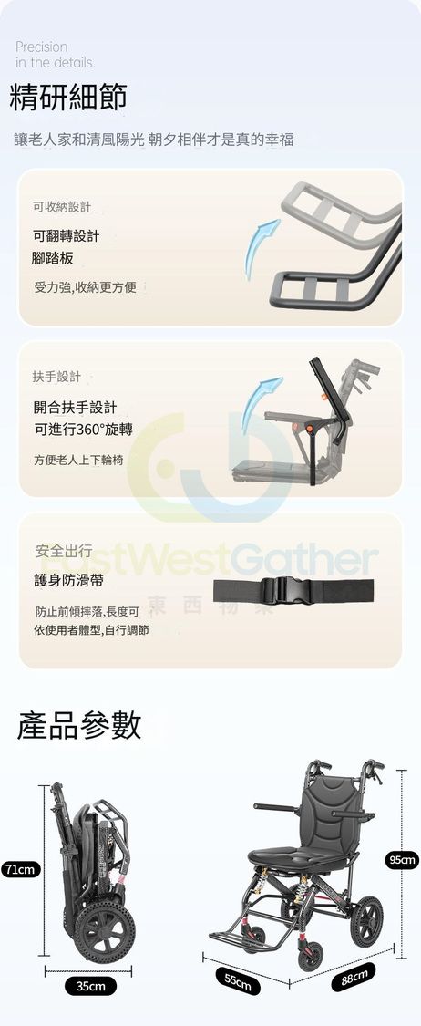 包送貨 -可折疊輪椅 Portable Wheelchair 白色特價款/覈心部分為鋁合金 可擕式輪椅 老人孕婦代步車 小型輪椅(M22288-04)