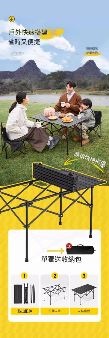 露營摺枱 便攜式戶外摺疊桌 蛋捲桌 露營摺疊枱 便攜式餐桌 露營用品 可折疊收納