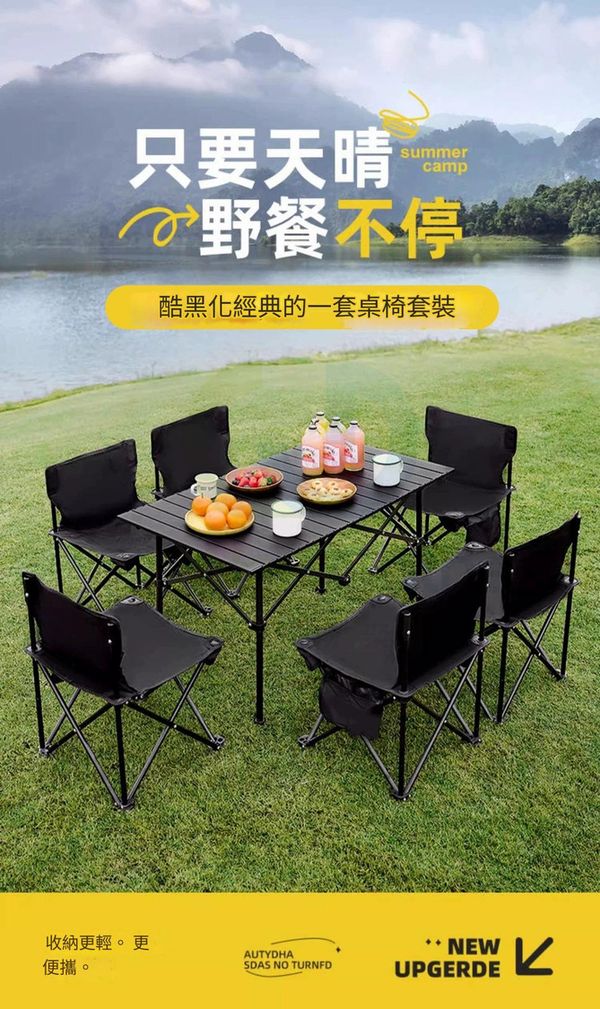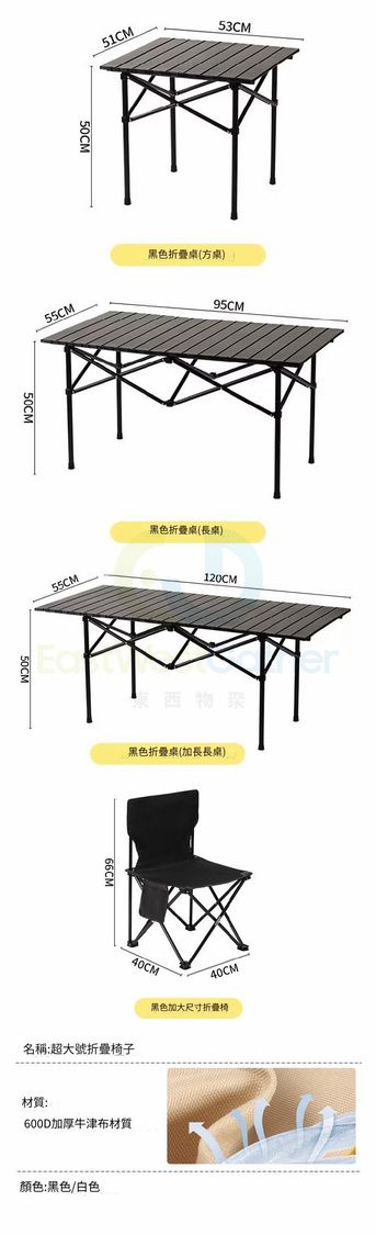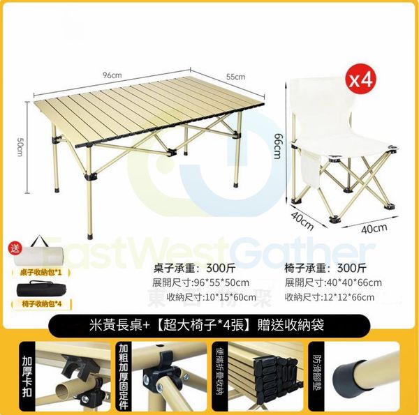 包送貨 - 折疊桌子 可擕式露營桌椅 portable camping table 米黃長桌+【超大號椅子*4張】贈送收納袋 蛋捲桌 野餐椅子裝備套裝(M22526-13)