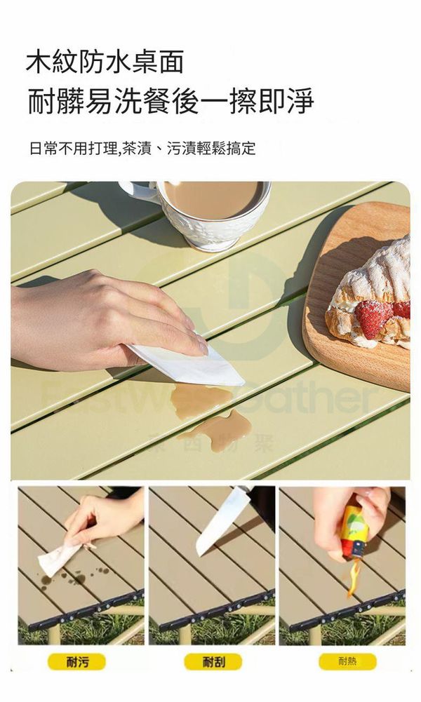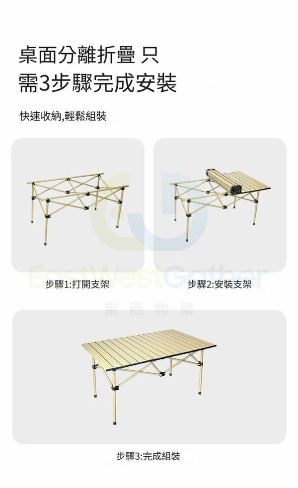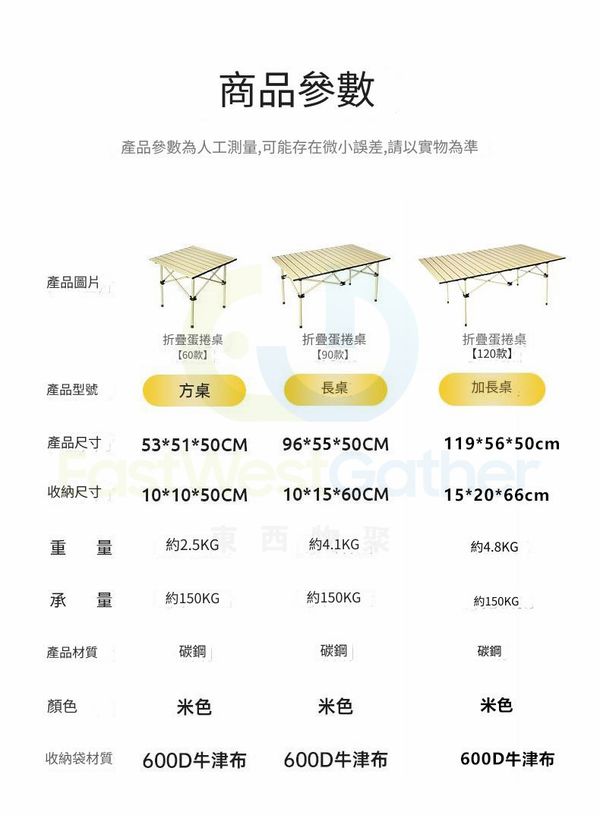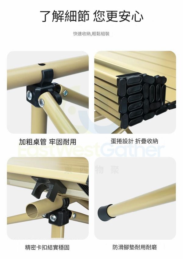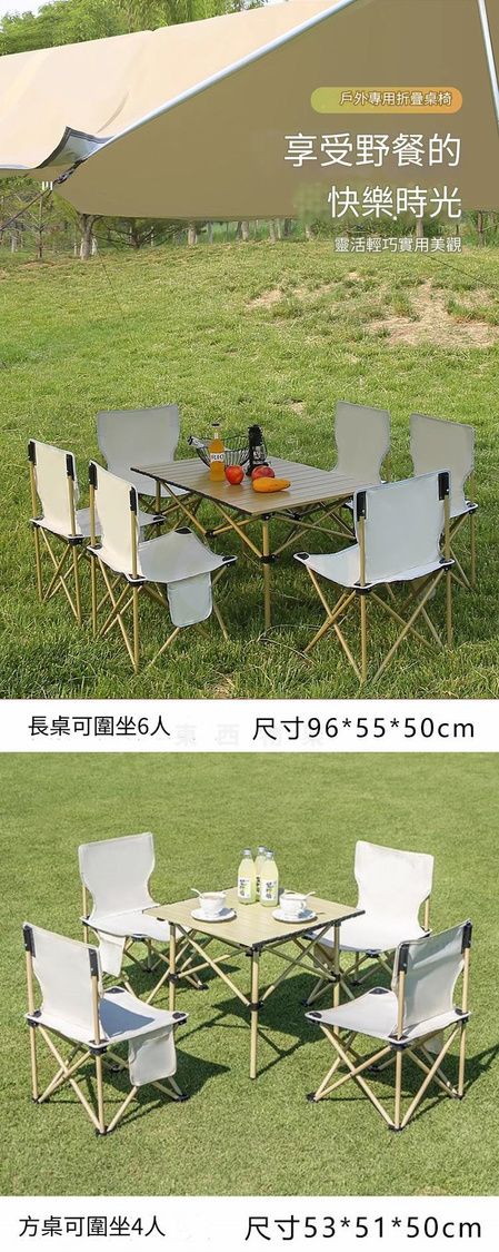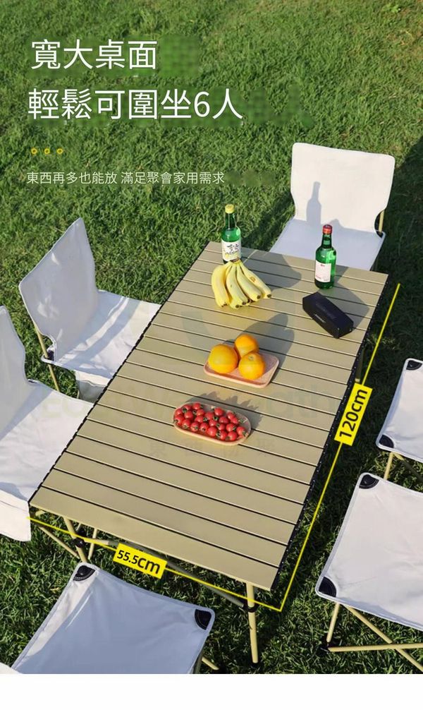 包送貨 - 可擕式露營桌椅 portable camping tables 119CM米黃加長長桌+大號米白椅子*6 折疊桌子 戶外蛋捲桌 野炊裝備 露營用品(M22530-21)