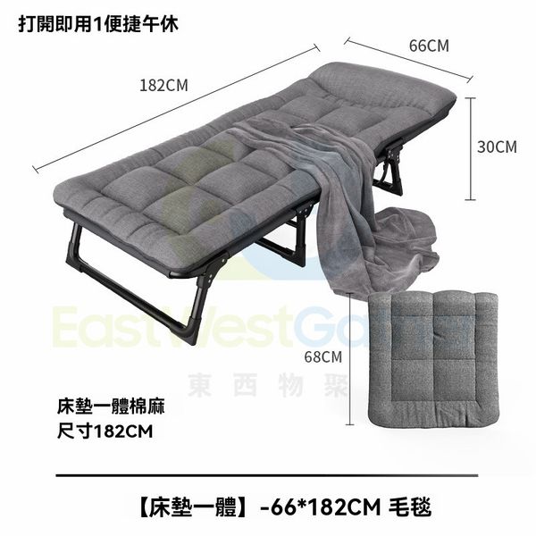 包送貨免安裝- 摺疊床 Folding bed 【床墊一體】腰部加固66*182cm+毛毯 摺床 工人床 單人家用簡易午休神器 行軍戶外小床 陪護躺椅(M22657-06)