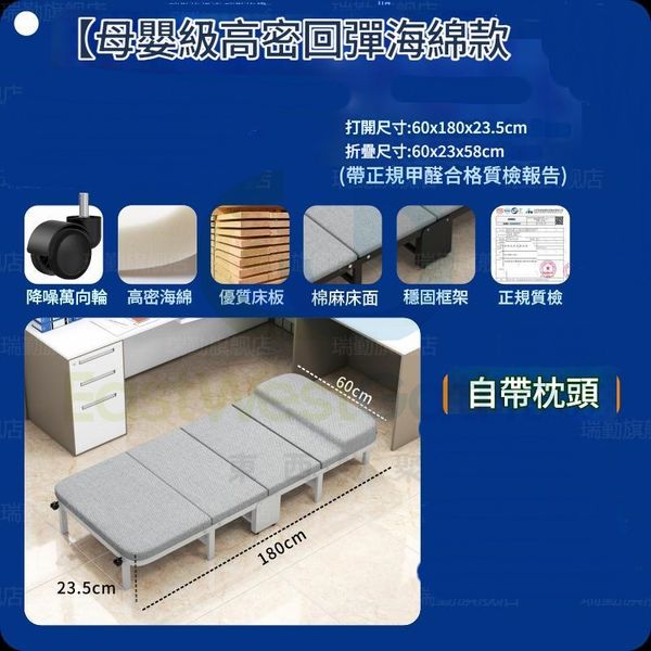 包送貨 - 摺疊床 Folding bed 60cm【自備枕頭+強硬框架】母嬰級高密回彈海綿款-四折床 摺床 工人床 午睡床 行军床 医院陪护床(M22662-11)