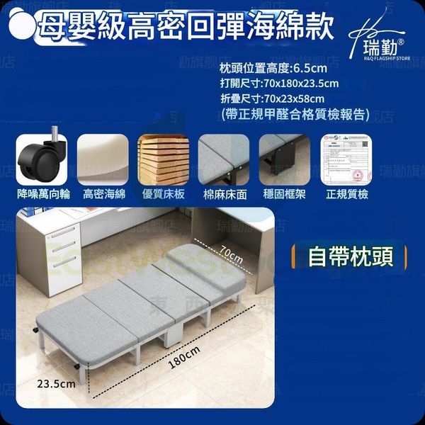 包送貨 - 摺疊床 Folding bed 70cm【自備枕頭+強硬框架】母嬰級高密回彈海綿款-四折床 摺床 工人床 午睡床 行军床 医院陪护床(M22662-13)