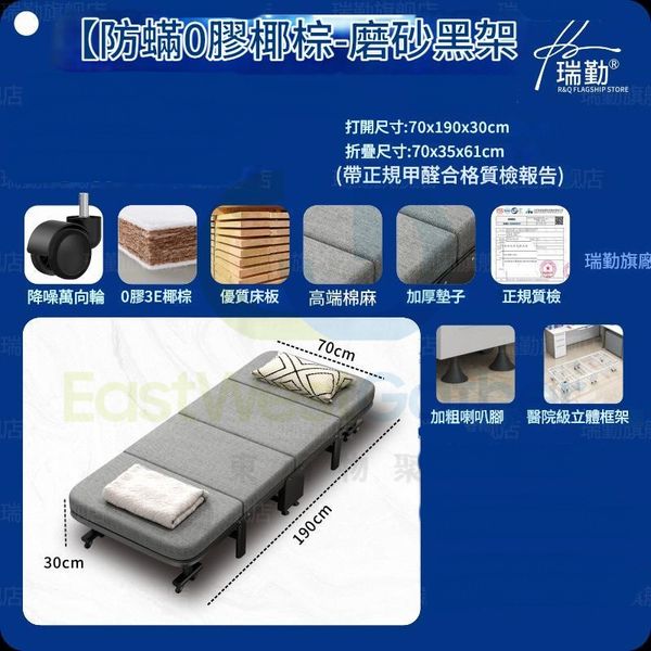 包送貨 - 摺疊床 Folding bed 70cm【醫院級立體材質框架】防蟎0膠椰棕護腰款-中醫推薦-磨砂黑架 摺床 工人床 午睡床 行军床 医院陪护床(M22662-38)