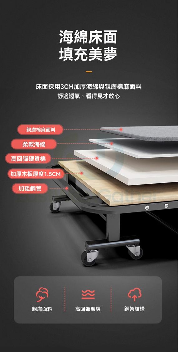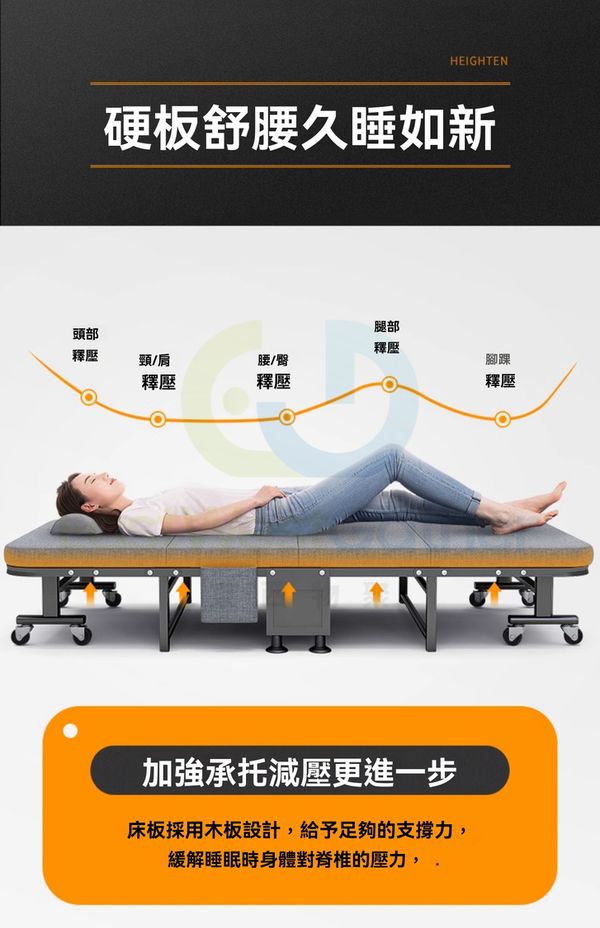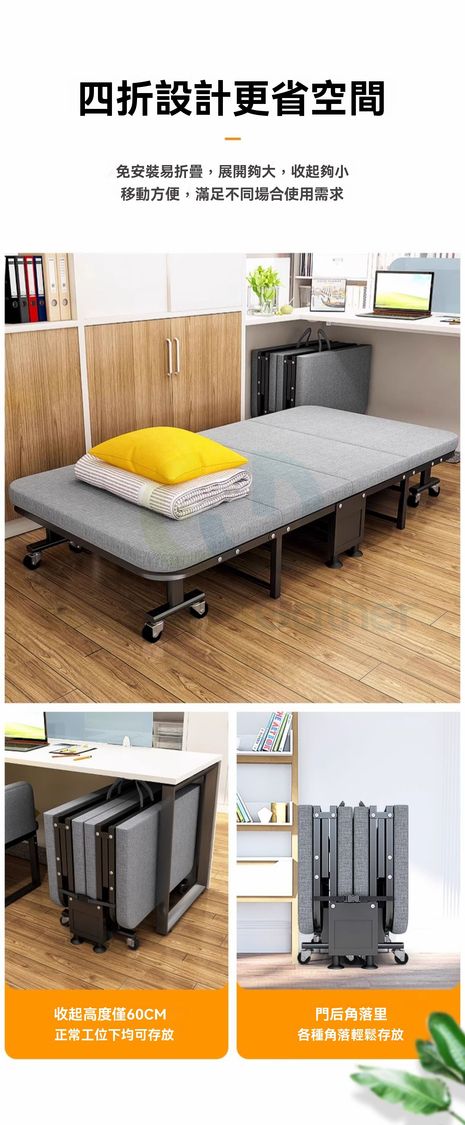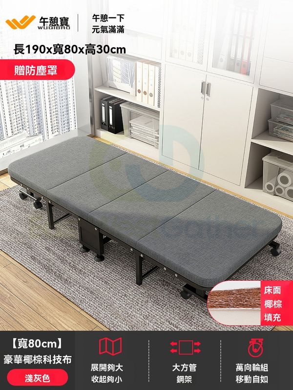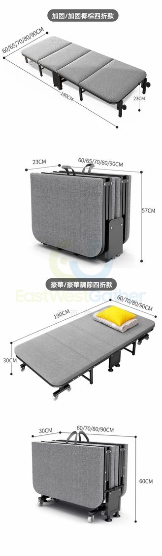 包送貨 - 摺疊床 Folding bed 【寬80-護脊椰棕】豪華四折床(防污科技布) 摺床 工人床 午睡神器 簡易躺椅 行軍小床陪護(M22664-20)