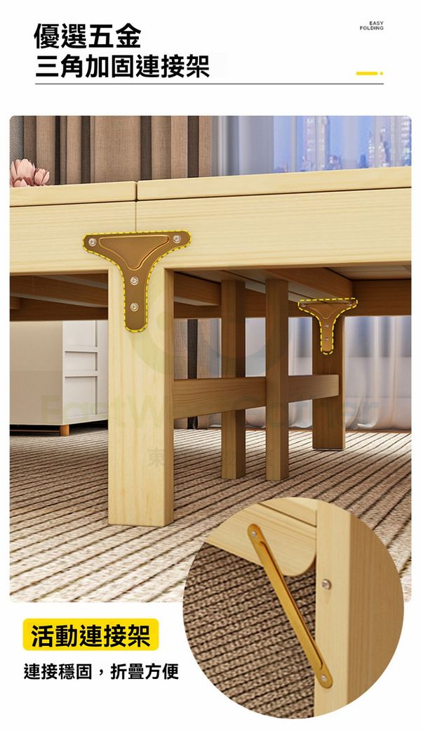 包送貨免安裝 - 摺疊床 Folding bed 100cm A款【床板加密帶中部支撐柱】送棉墊+枕頭 實木單人床 租房小床 辦公室午休家用(M22665-04)