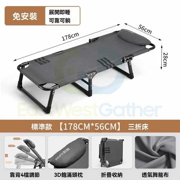 包送貨免安裝 - 摺疊床 Folding bed 標準款【178CM*56CM】三折床 摺床 工人床 便攜式行軍床 成人午睡神器(M22666-01)
