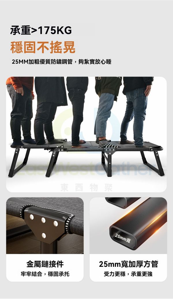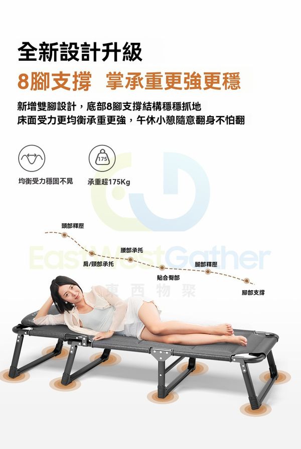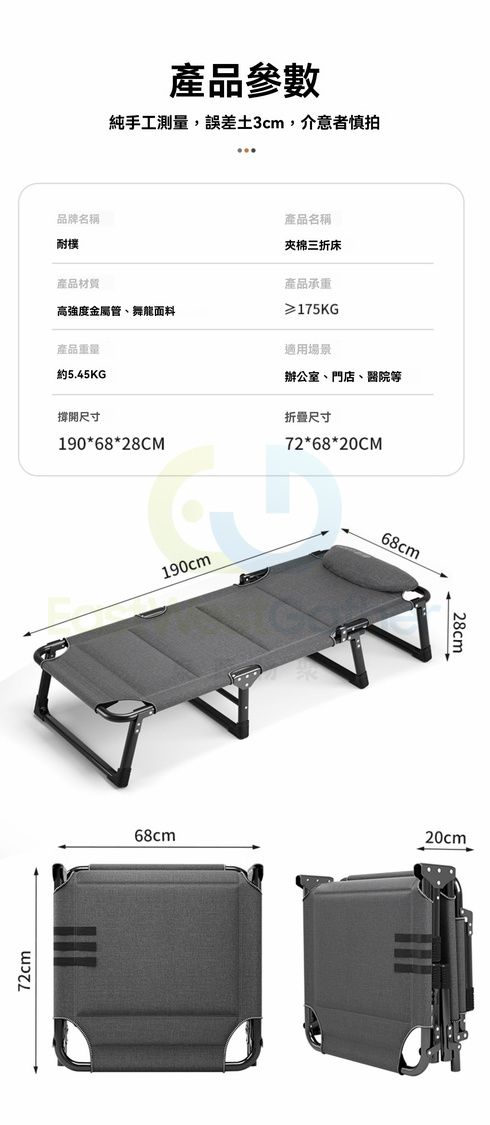 包送貨免安裝 - 摺疊床 Folding bed 標準款【175CM*60CM】充棉一體三折床 摺床 工人床 便攜式行軍床 成人午睡神器(M22666-09)
