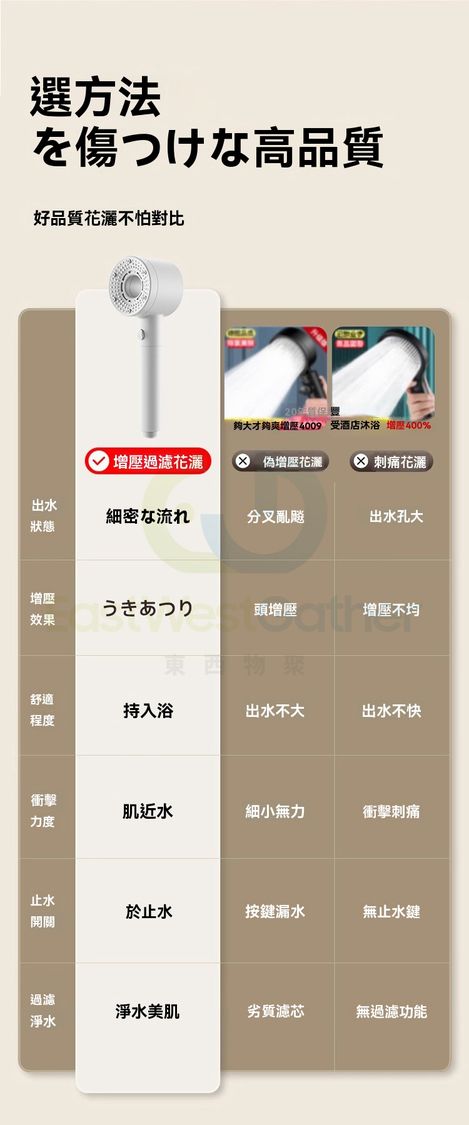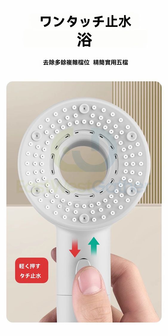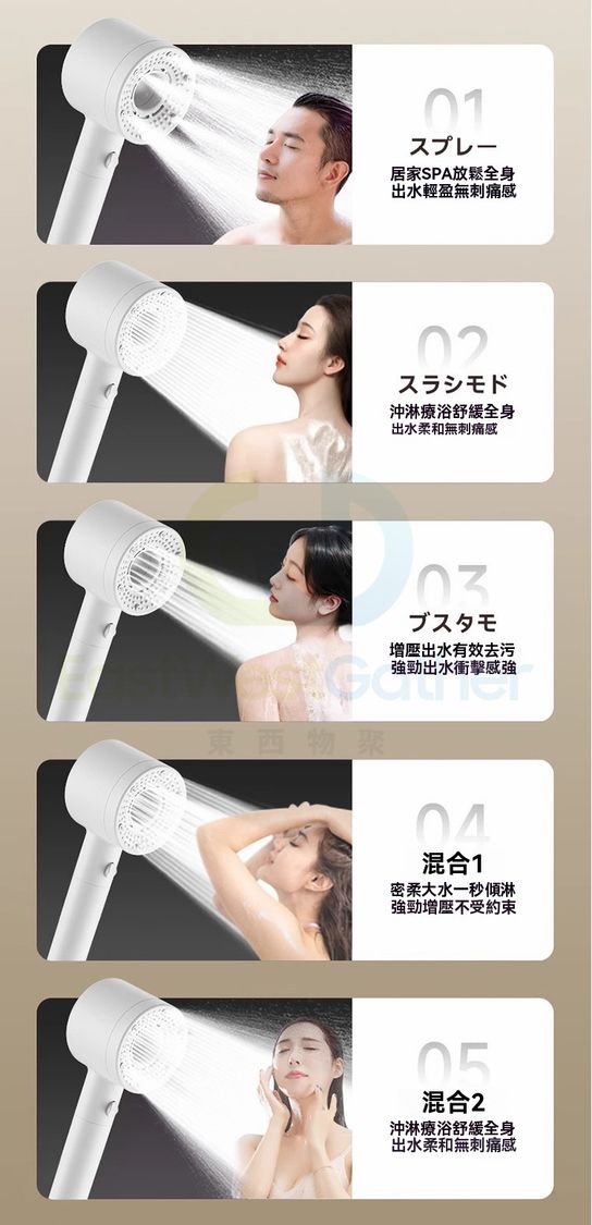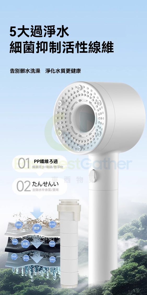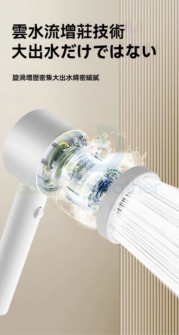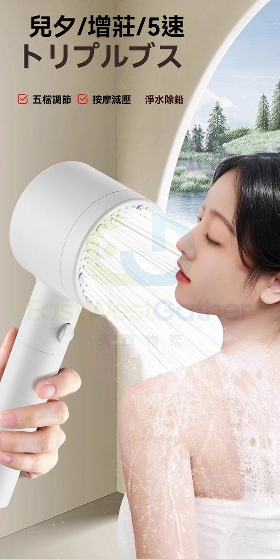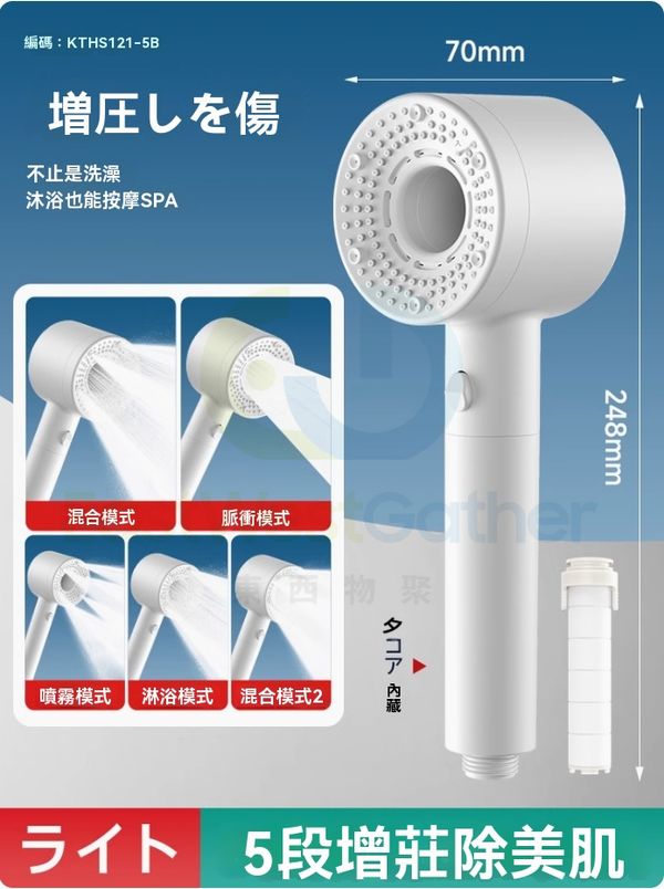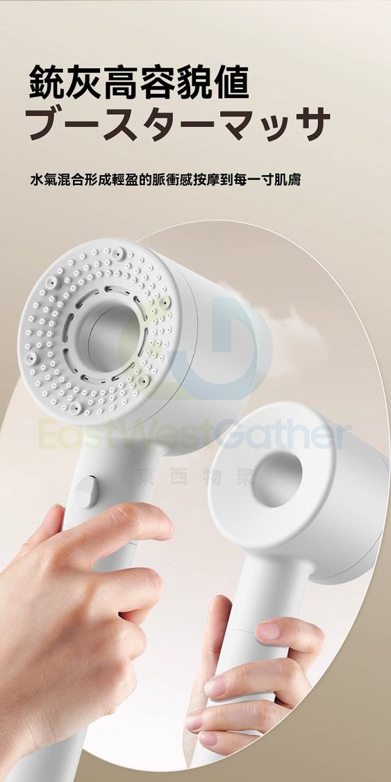 包送貨-沐浴花灑噴頭 Bathing shower head 雙渦輪增壓 強過濾加壓浴室單獨蓮蓬頭 珠白 過濾淨水五檔(M22765-8H-01)